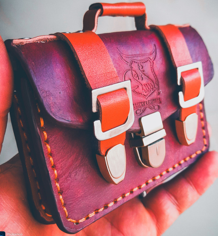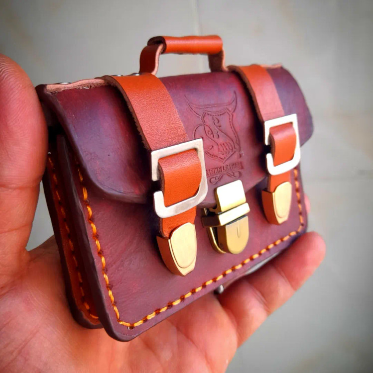 چرم کراست ضخیم گرید a و جوندار، اهاردار. دست رنگ. ترکیب رنگ ساختگی و سفارشی ساز.
