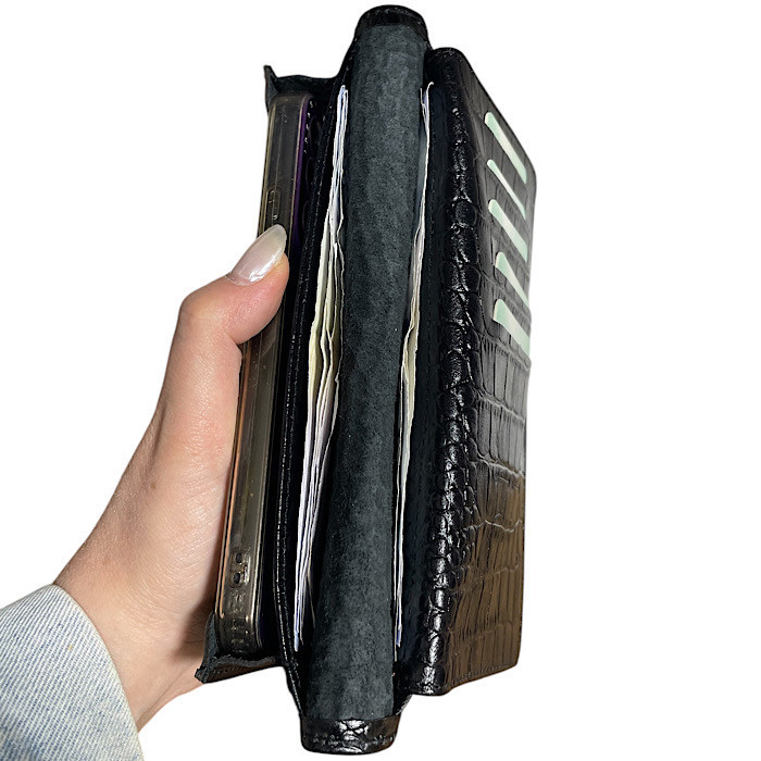 کیف کتی یا پالتویی از جنس چرم طبیعی دارای محفظه تفکیف اسکناس و جای کارت و البوم کارت،شناسایی عکس دار با ابعاد ۱۸*۹سانتیمتر مناسب کت و کت شلوار و خودرو و به صورت دستی جهت انجام کارهای روزمره