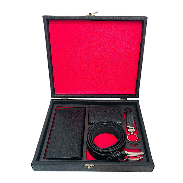 ست چهارتیکه چرم طبیعی مردانه در جعبه لوکس اماده ارساله که شامل کیف کتی/ جاکارتی/ جاکلیدی و کمربند انتخابی خاص برای هدیه ای کاربردی و ماندگار تمامی اقلام این ست از چرم باکیفیت تهیه شده و مناسب استفاده روزمره و رسمی است باکس شکیل چرمی ست چهارتیکه ان را به گزینه ای ایده ال برای هدیه تولد/ سالگرد /روز مرد و مناسبت های ویژه تبدیل کرده است